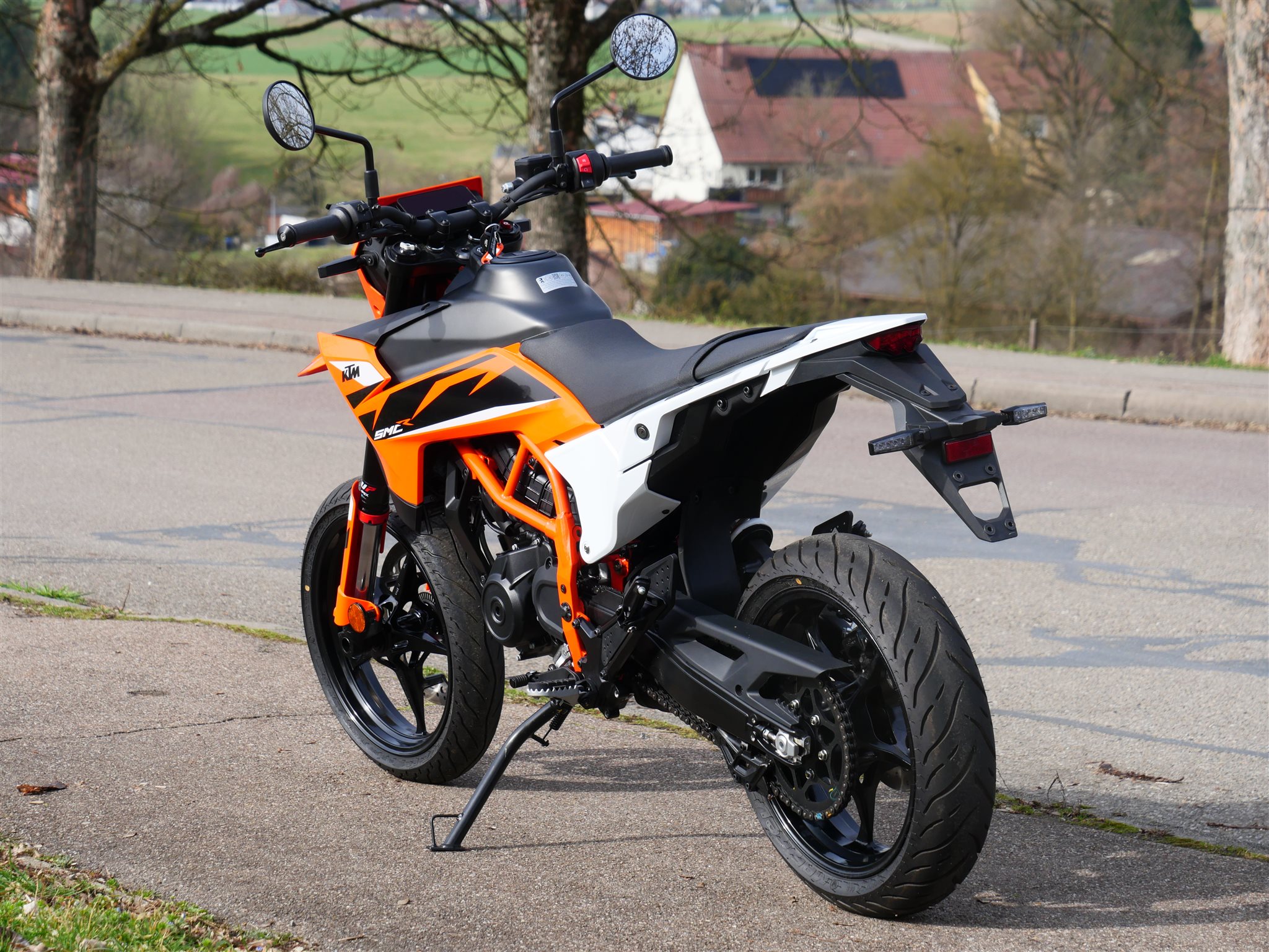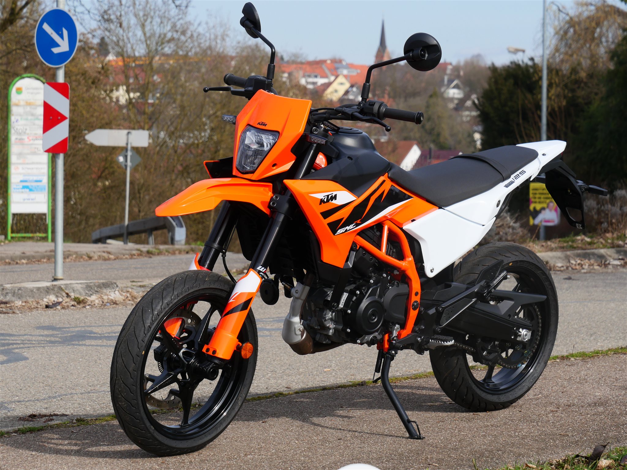 Die KTM 125 SMC R ist gemacht für alle, die jede Kurve feiern und die Stadt zu ihrem Playground machen wollen. Mit ihrem aggressiven Look, dem schlanken Design und der kompromisslosen Supermoto-DNA zieht sie alle Blicke auf sich im Stand wie in Bewegung.