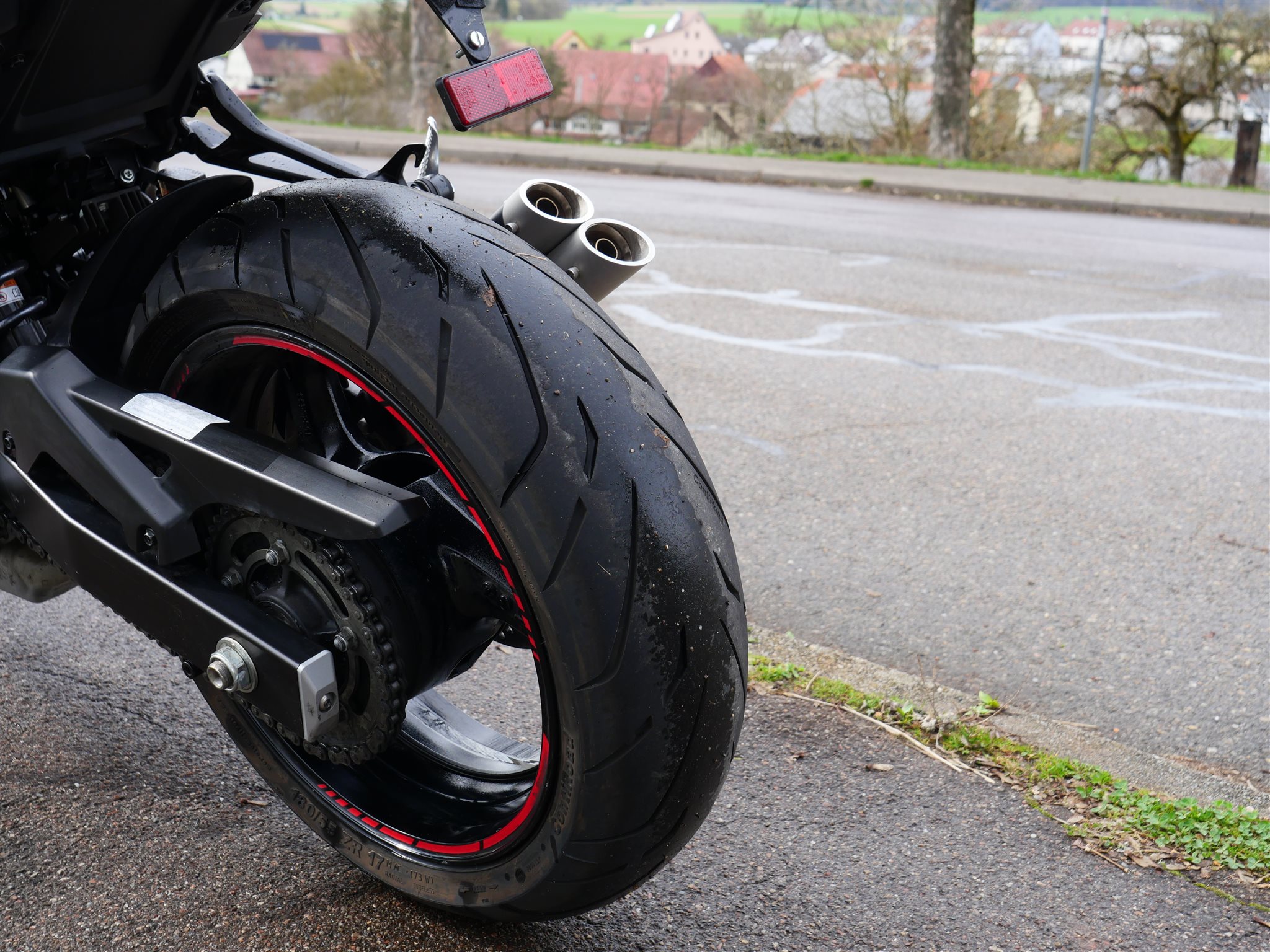 Zubehör: EXIL-Abgasanlage, kurzer Kennzeichenhalter, LED-Blinker, Bugspoiler, Sportgriffe