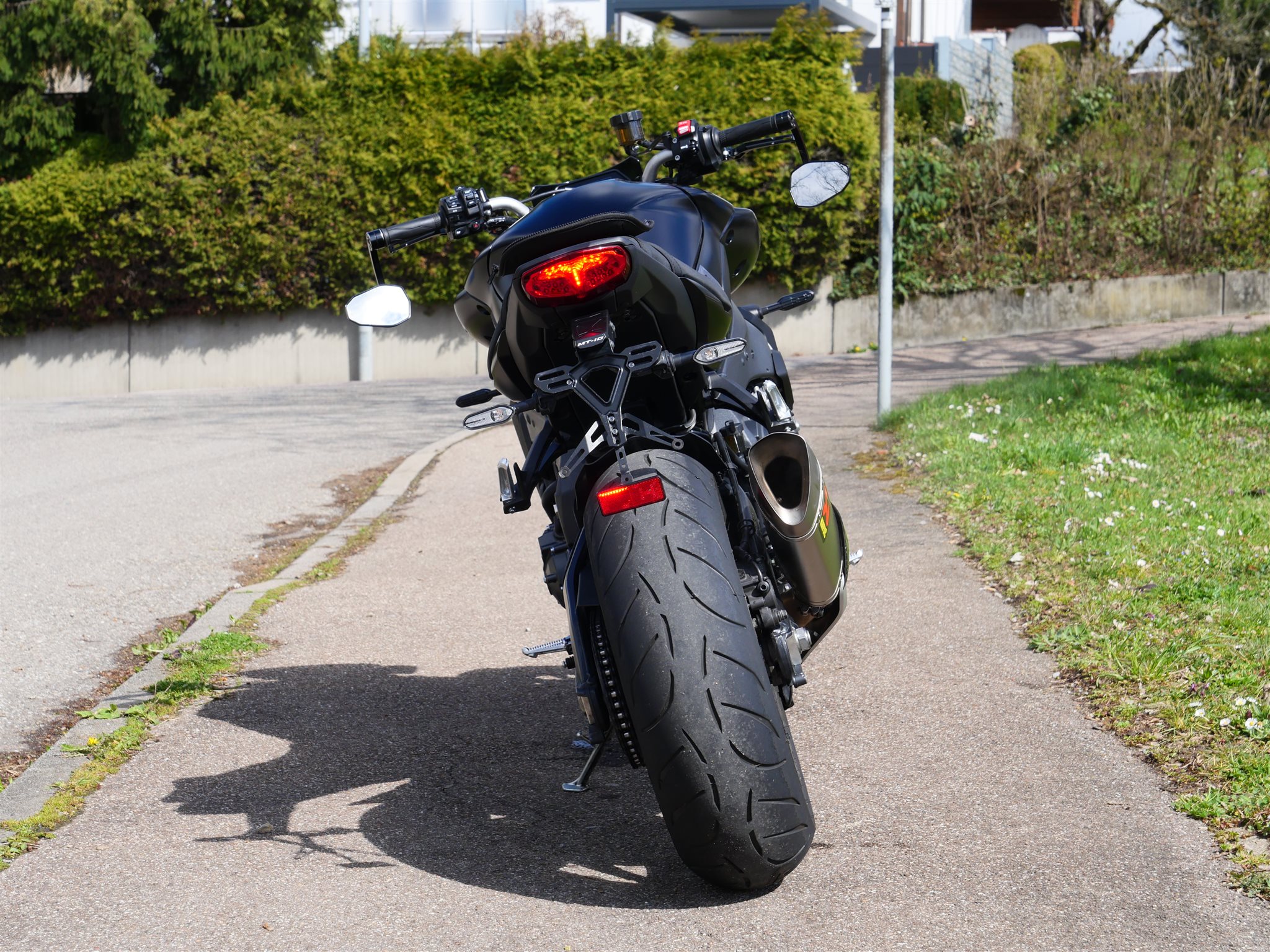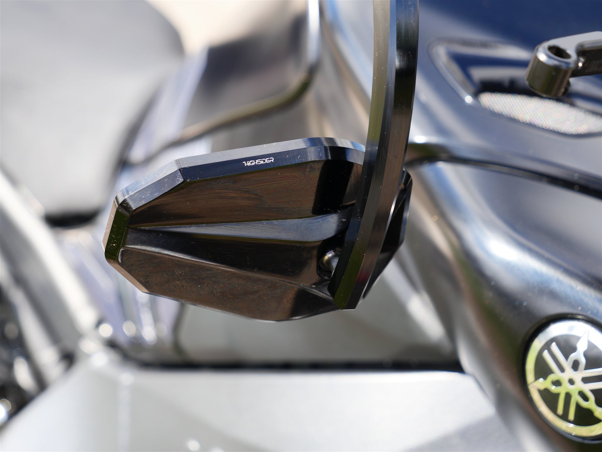 Zubehör: Akrapovic-Abgasanlage, Highsider Lenkerendspiegel
