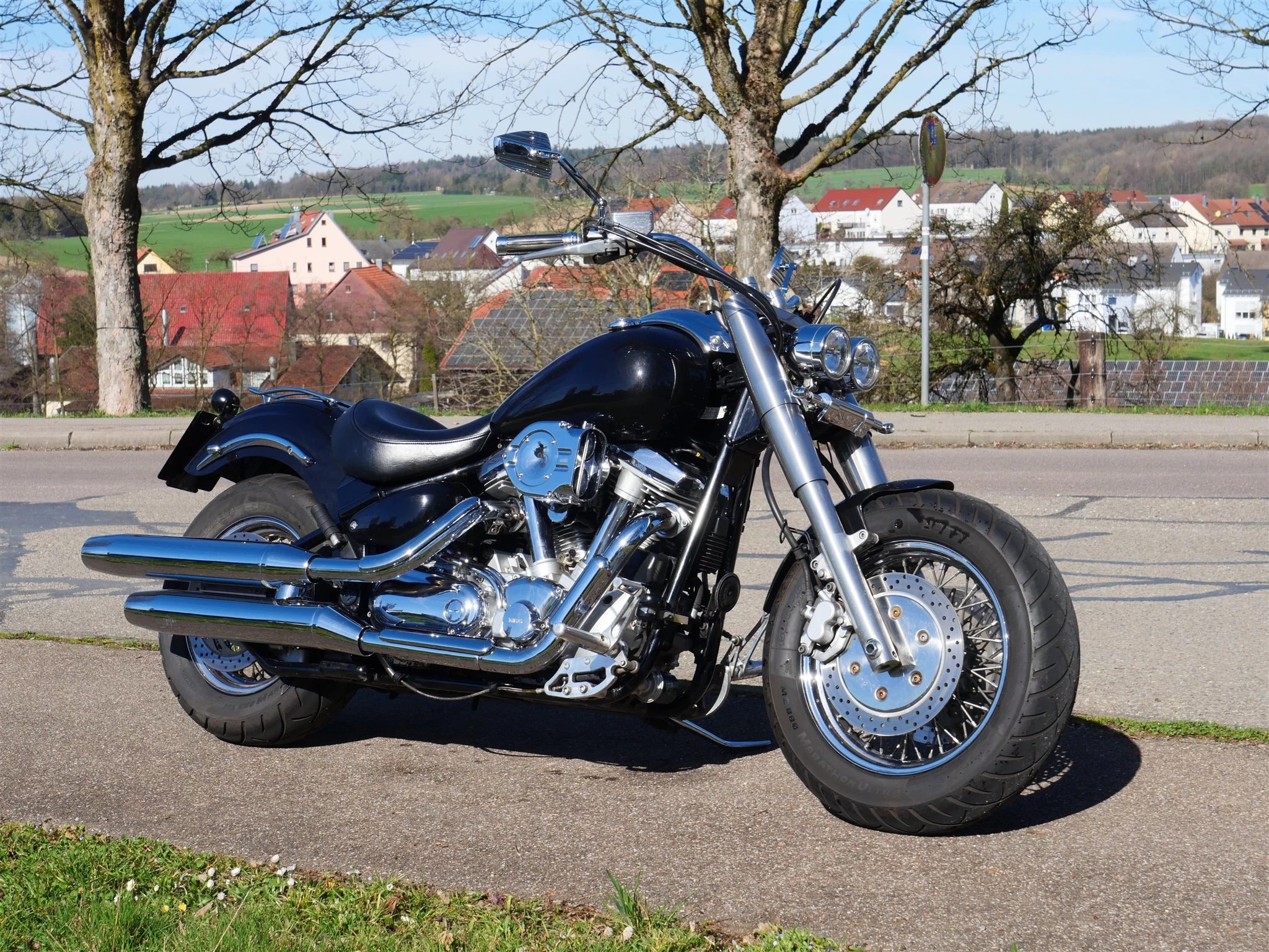 Die Yamaha XV1600 Wild Star verkörpert klassischen Cruiser-Charakter und zeitlosen Stil. Mit ihrem massiven Auftritt, viel Chrom und der langen, tiefen Silhouette zieht sie überall die Blicke auf sich egal ob beim entspannten Cruisen durch die Stadt oder auf der langen Ausfahrt über Land.